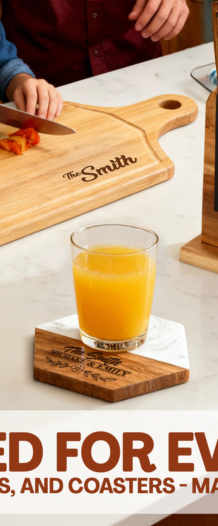 Introducing Custom Empire Shop Personalized Laser Engraved Wooden Cutting Board, a timeless addition to any kitchen space! Crafted with care in the USA, this cutting board is more than just a kitchen tool; it's a personalized masterpiece tailored to your specifications. Customize this essential kitchen item with your chosen name or message, expertly laser engraved onto the sturdy wooden surface. Whether it's for yourself, a newlywed couple, or a dear friend moving into their dream home, this cutting board adds a personal touch to any culinary space. Made from high-quality wood, this cutting board is as durable as it is stylish, ensuring years of reliable use. Its sleek design and customized engraving make it a standout piece in any kitchen, while its practicality makes it an indispensable tool for food prep and serving. Ideal for wedding gifts, bride gifts, or as a thoughtful gesture for any occasion, this personalized cutting board is a versatile and heartfelt present that will be cherished for years to come. Elevate your kitchen essentials with our Customized Laser Engraved Wooden Cutting Board today! Customized Elegance: Elevate your kitchen decor with our Personalized Cutting Board, meticulously laser engraved with your custom name or message. Whether it's adding a personal touch to your own culinary space or gifting it to someone special, this cutting board stands out as a unique and thoughtful addition. Endless Customization Options: With a variety of fonts and designs available, you have the freedom to personalize this cutting board to suit any occasion. From birthdays and holidays to weddings and anniversaries, the possibilities are endless. Choose from elegant script fonts for a sophisticated touch or playful designs for a more whimsical feel. Eco-Friendly Bamboo Construction: Crafted from premium bamboo, known for its durability and sustainability, this cutting board measures 13''x6'', providing ample surface area for all your food preparation needs. Perfect Gift for Every Celebration: Whether you're celebrating a wedding, bridal shower, housewarming, or anniversary, our personalized cutting board makes a memorable and cherished gift. Surprise the happy couple with a thoughtful wedding present, or congratulate new homeowners with a custom piece that adds a personal touch to their kitchen. USA-Made Quality: Designed and manufactured in the USA, this cutting board exemplifies quality craftsmanship and attention to detail. Each board is carefully inspected to ensure it meets our high standards of excellence, guaranteeing a product that you can trust and enjoy for years to come.