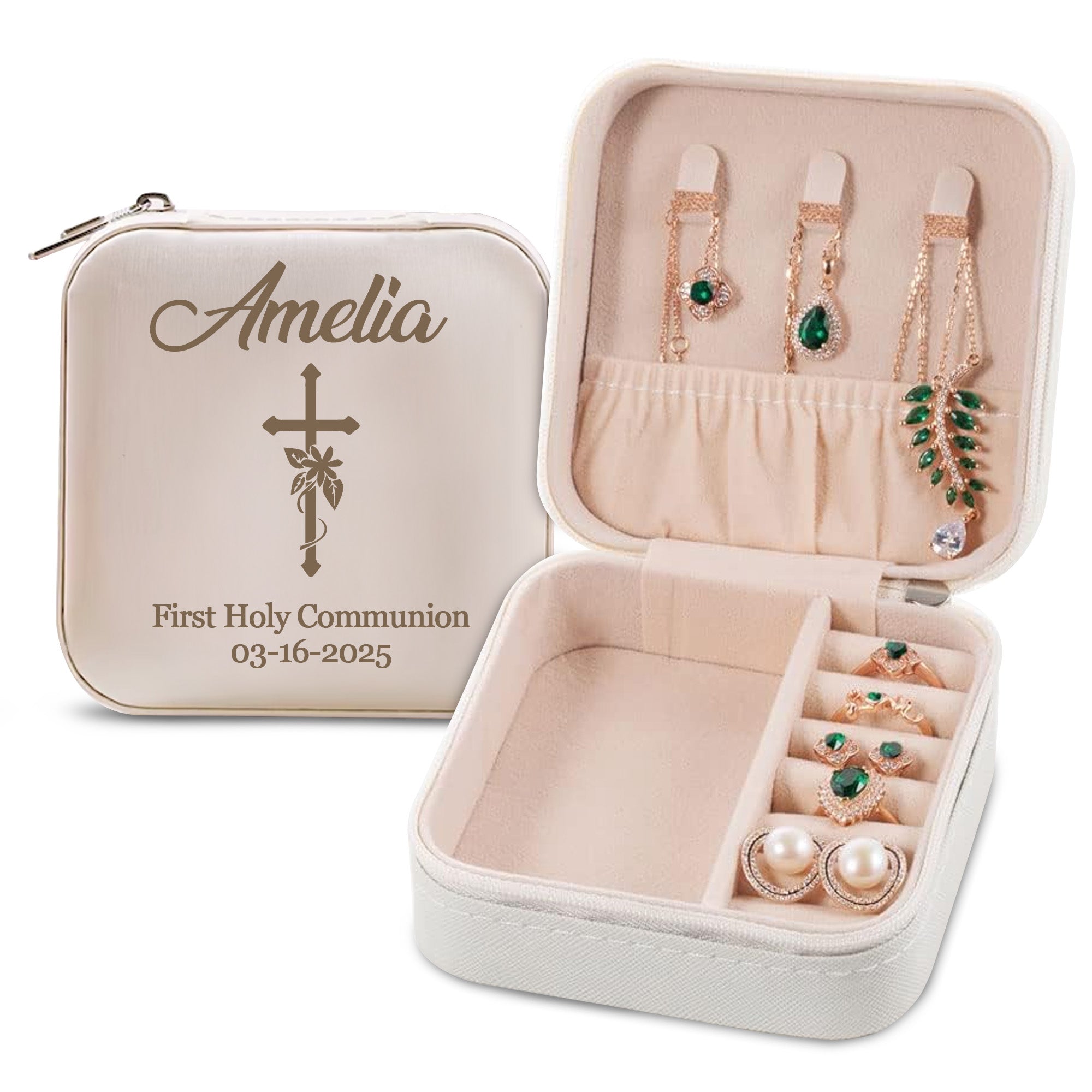 - CUSTOM ENGRAVED DESIGN: Celebrate her First Communion w/ a personalized leather jewelry box, beautifully engraved with her name or special message. A meaningful and timeless keepsake that honors her faith and creates memories she'll cherish forever.