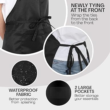 - Adjustable and waterdrop resistant: Equipped with adjustable straps and crafted from water-resistant material, this apron ensures a comfortable fit and protects against spills and splashes. Plus, it comes with two convenient pockets for storing utensils or recipe cards.