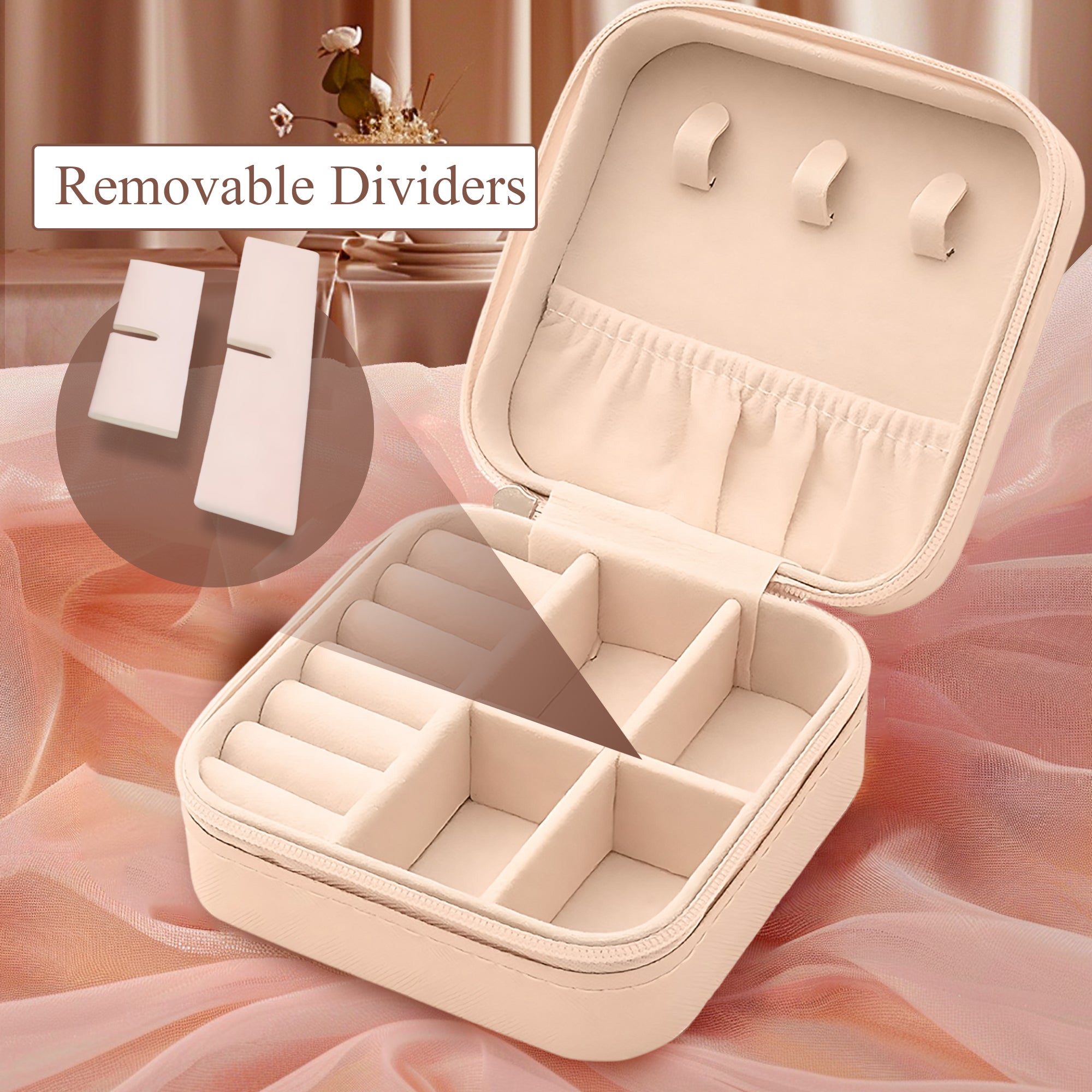 - Designed with travel in mind, this personalized jewelry box for girls is compact yet spacious, measuring 3.9" in width, 3.9" in length, and 2" in height. Its durable zipper ensures secure closure, safeguarding your jewelry wherever you go.