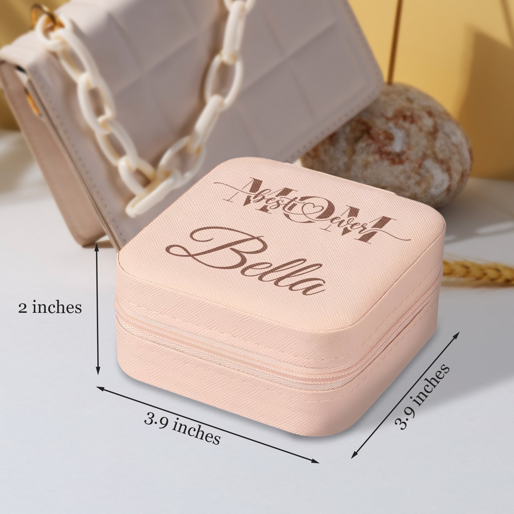 - Designed with travel in mind, this personalized jewelry box for girls is compact yet spacious, measuring 3.9" in width, 3.9" in length, and 2" in height. Its durable zipper ensures secure closure, safeguarding your jewelry wherever you go.