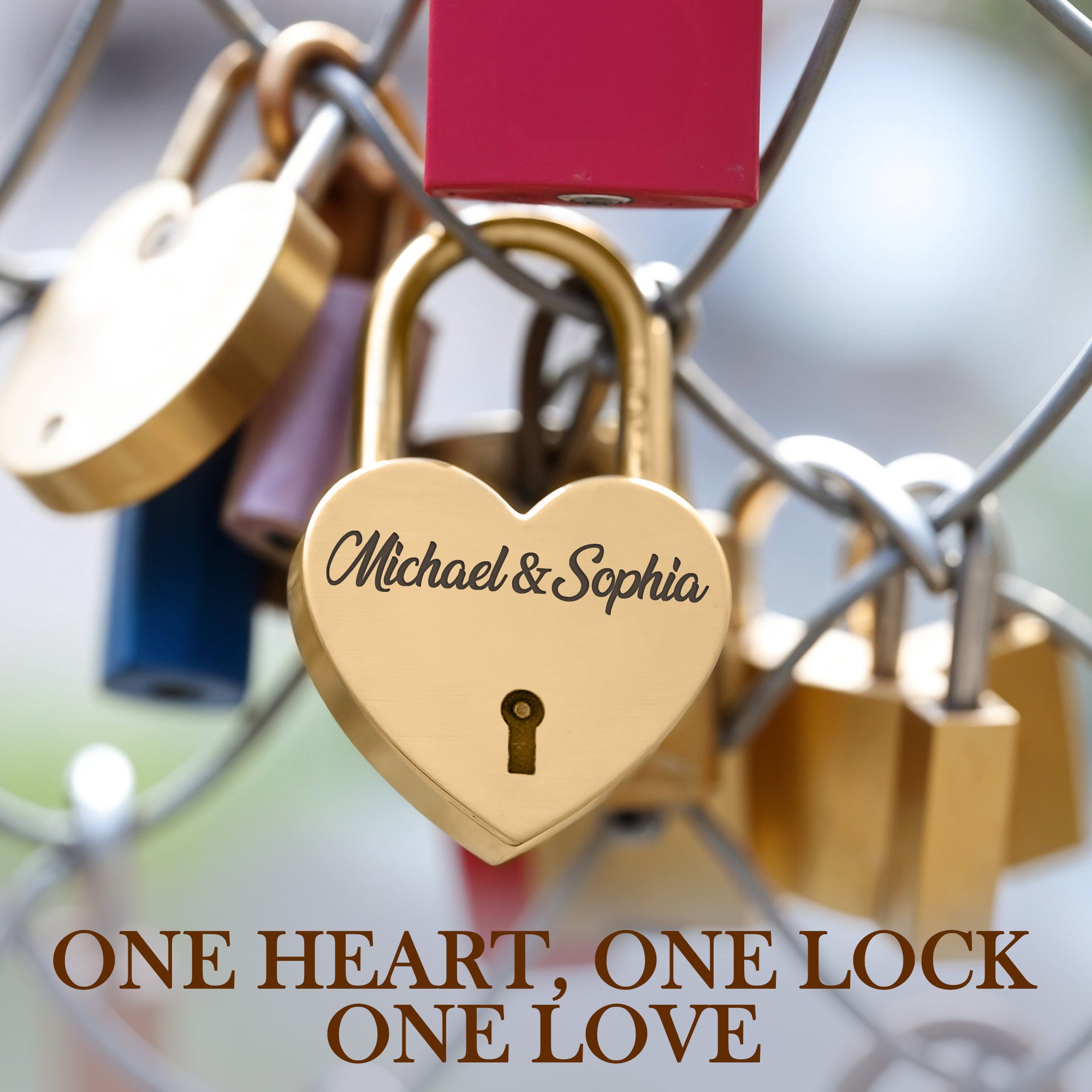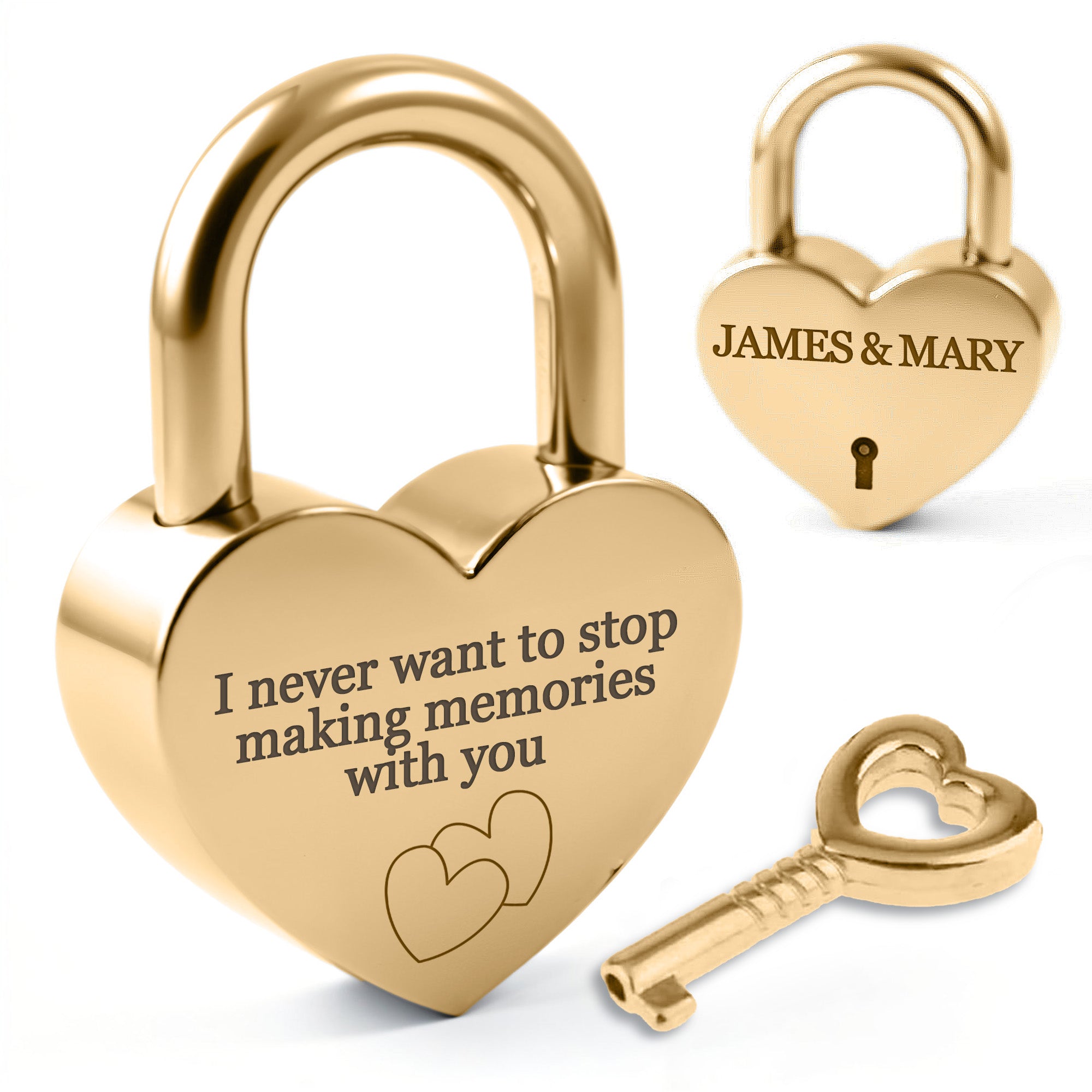 Gold Heart Shape Padlock with Custom Engraving