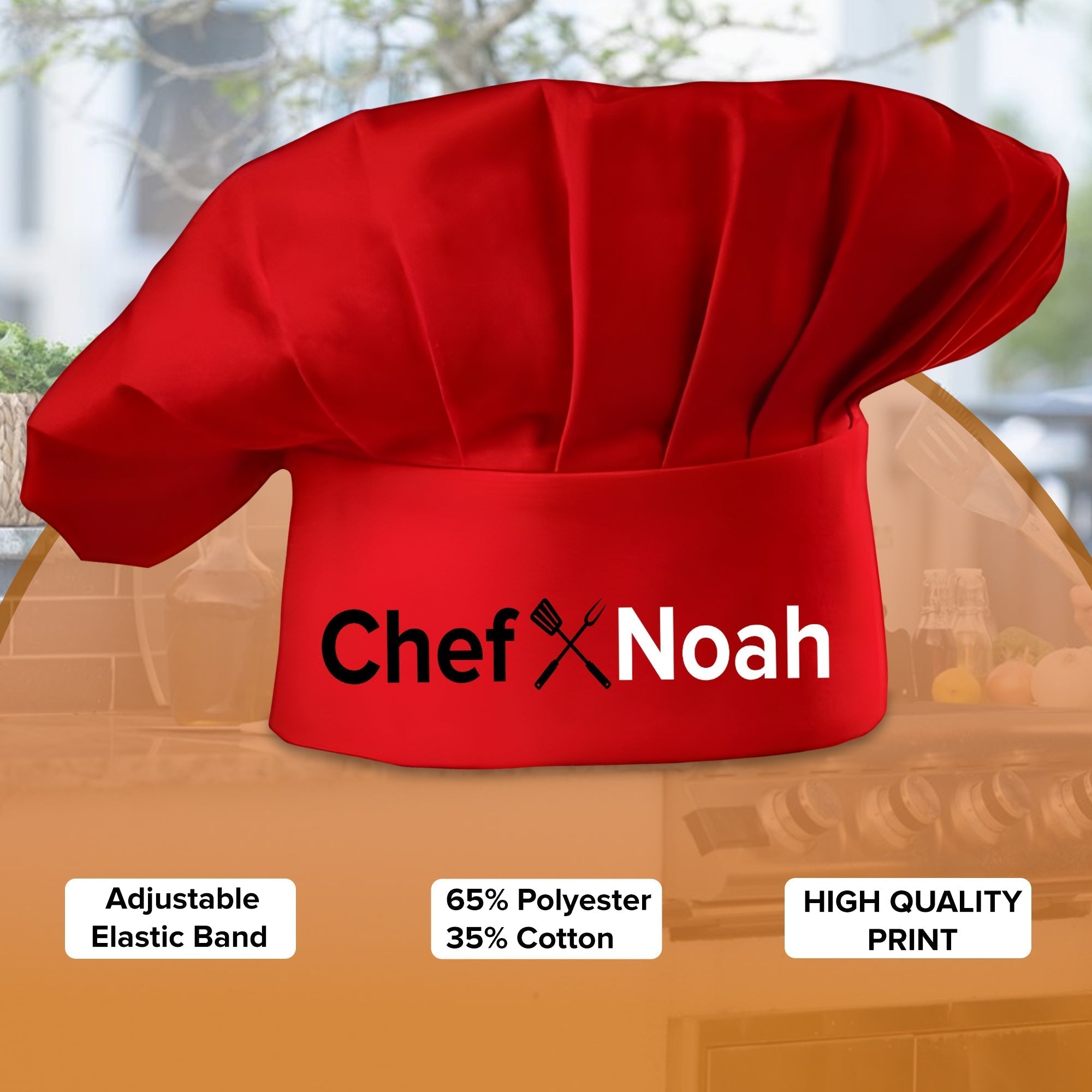 - Our personalized chef hats are crafted to withstand any cooking conditions. Whether you're grilling over high flames or cooking on a steamy stove top, our custom caps provide reliable protection for your hair while retaining their shape. Made from durable and sturdy materials, they can endure the heat and humidity of any kitchen or outdoor cooking area. Showcase your personal style with our personalized chef hat while ensuring your hair stays protected.