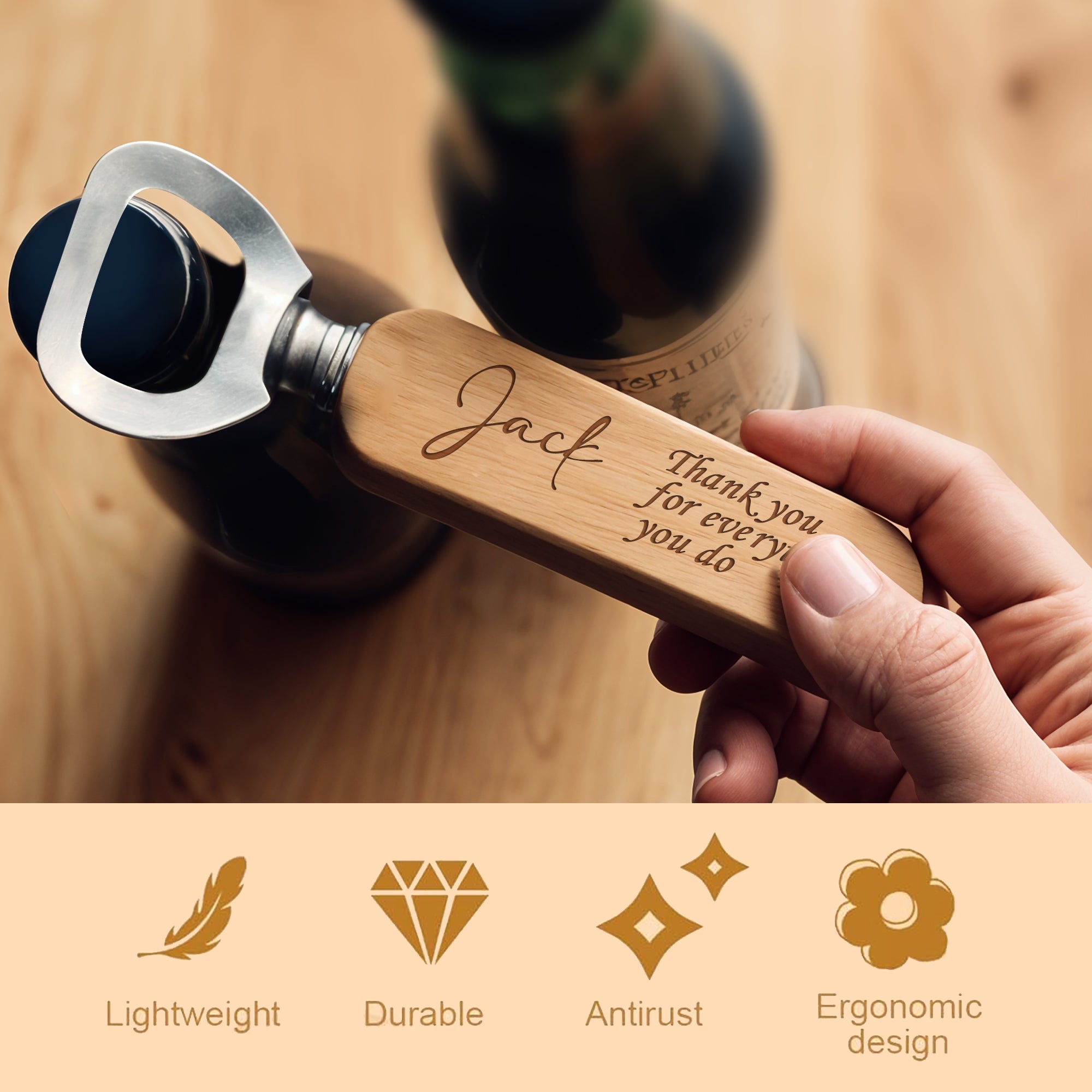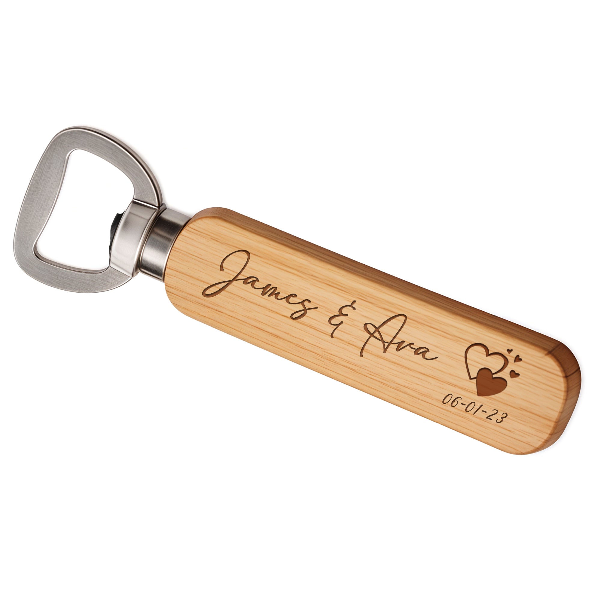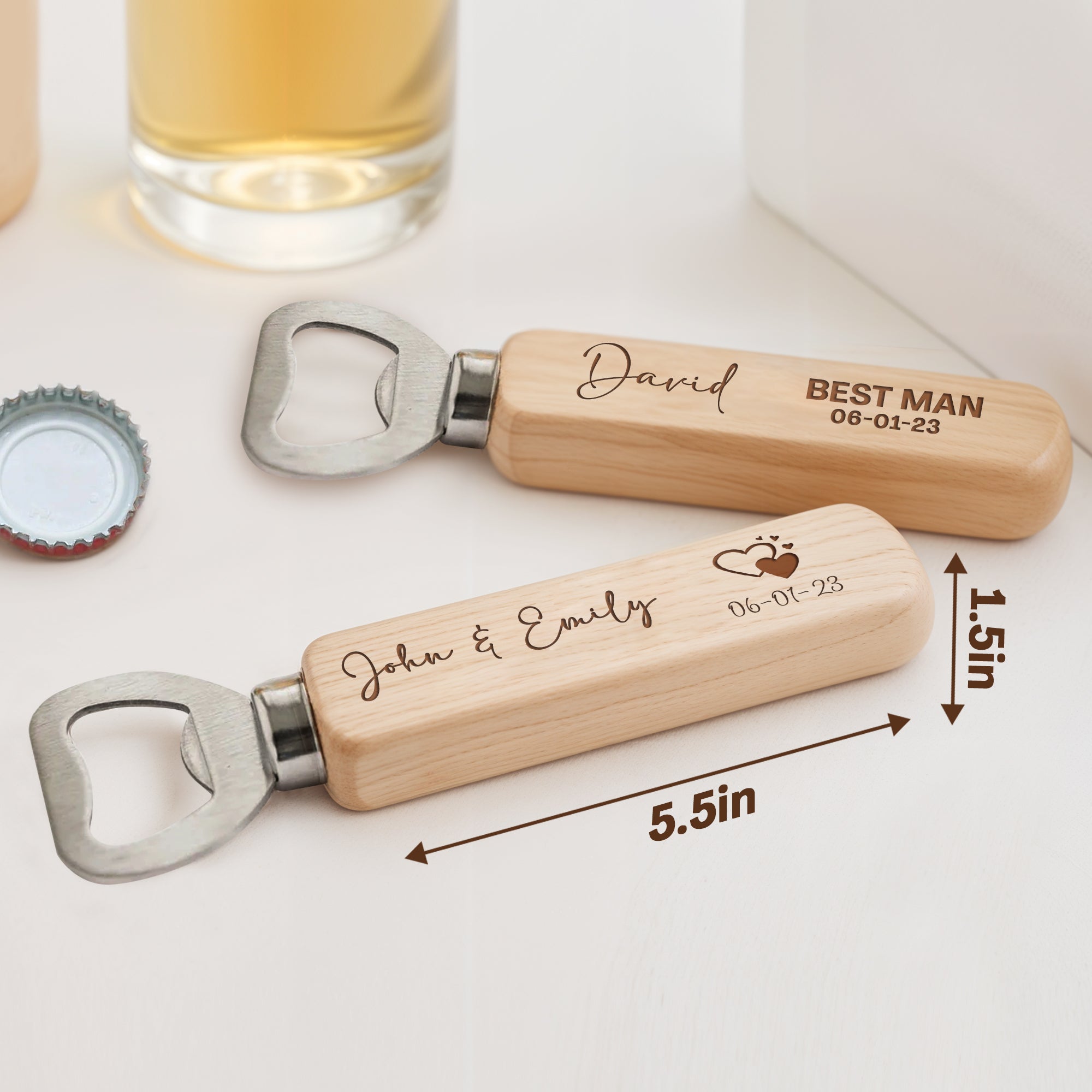 - Customized Wedding Gift: Perfect as a personalized wedding gift, this stainless steel personalized bottle opener features custom wood handles engraved with names, dates, or special messages