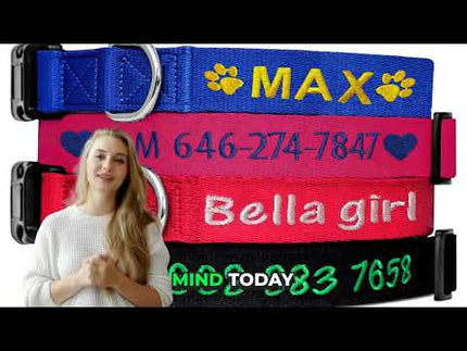 - Relieve your worries with our custom embroidered dog collar, ensuring your beloved pet's identity is always unmistakable. Say goodbye to noisy tags and fretting over their whereabouts. Upgrade to a collar that confidently declares, "I am cherished and safeguarded," providing both safety and style.