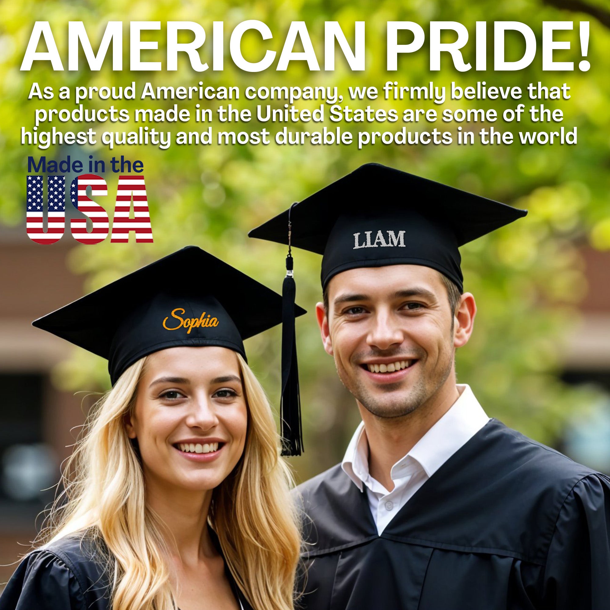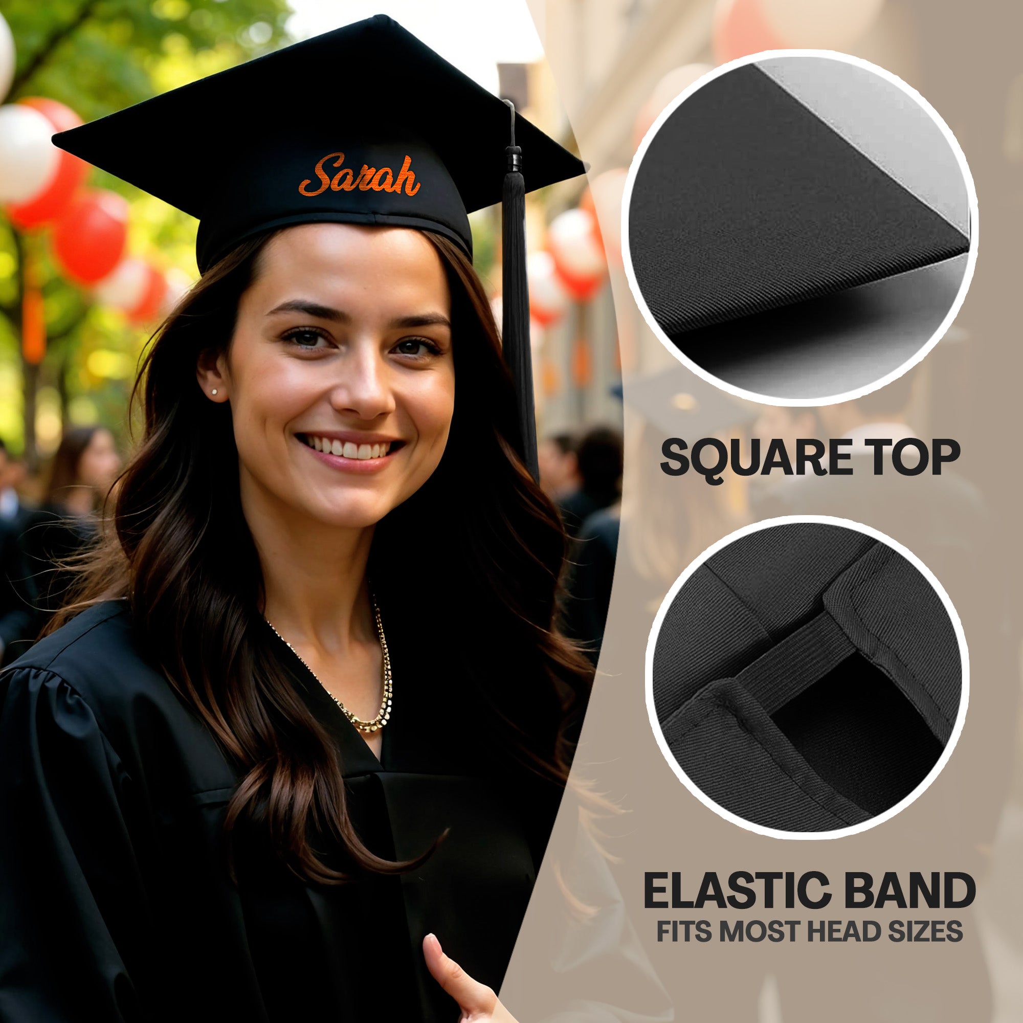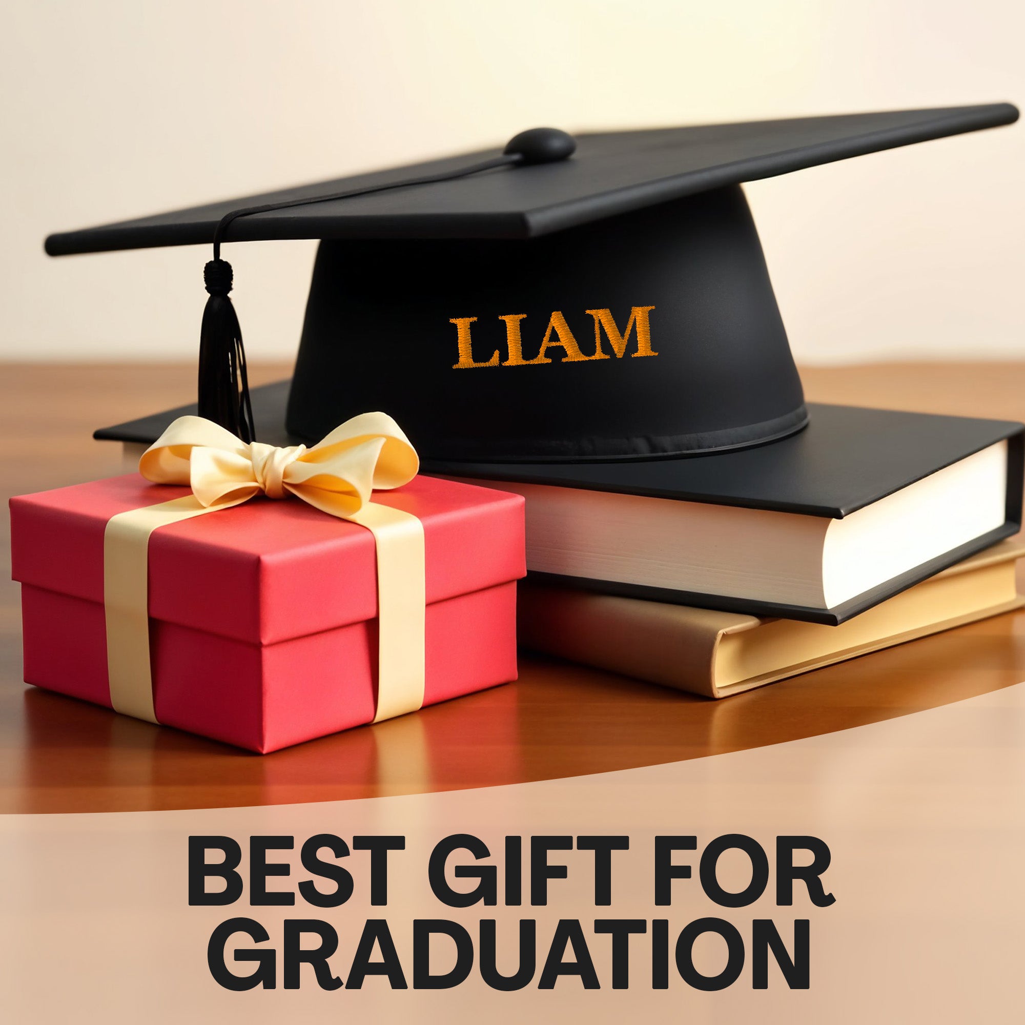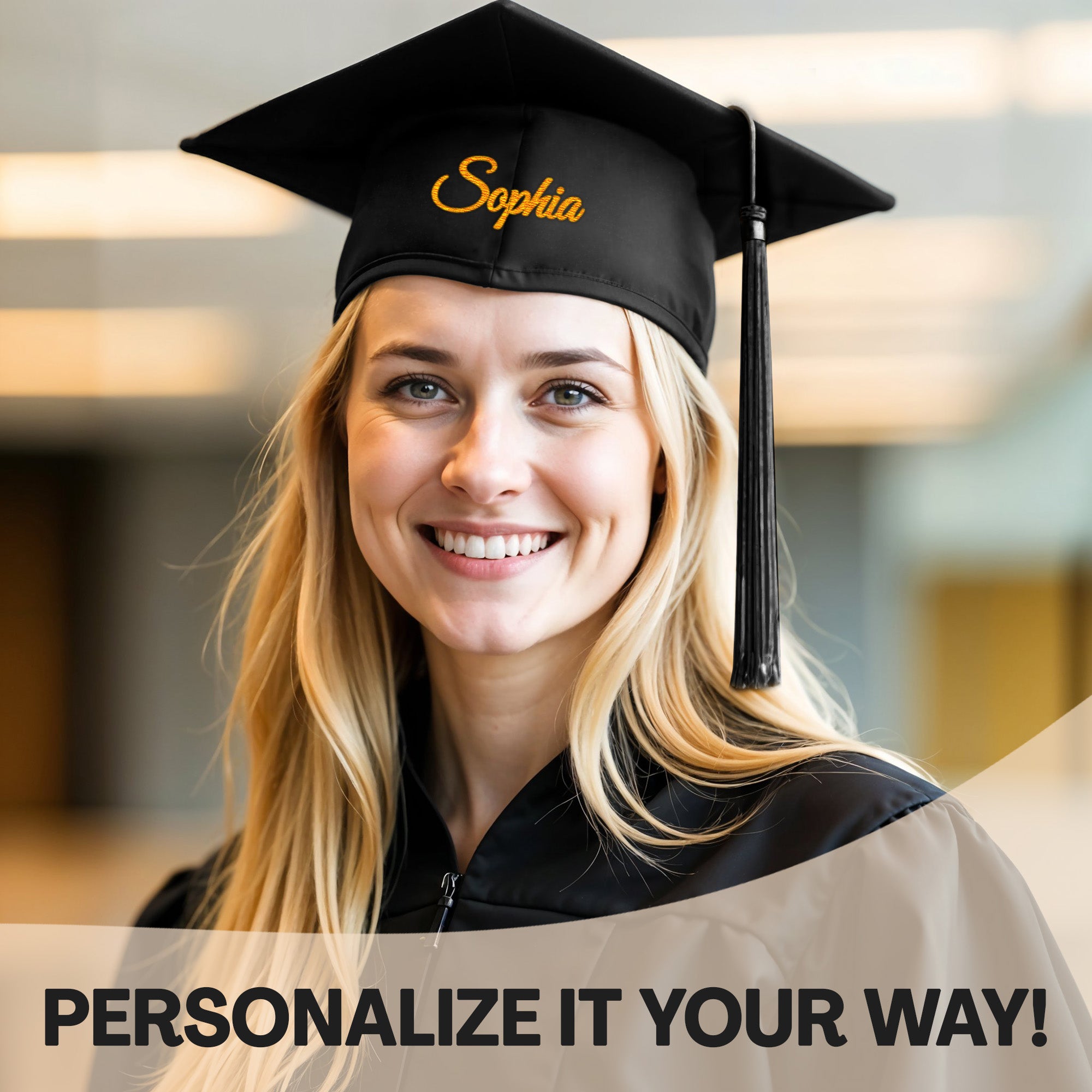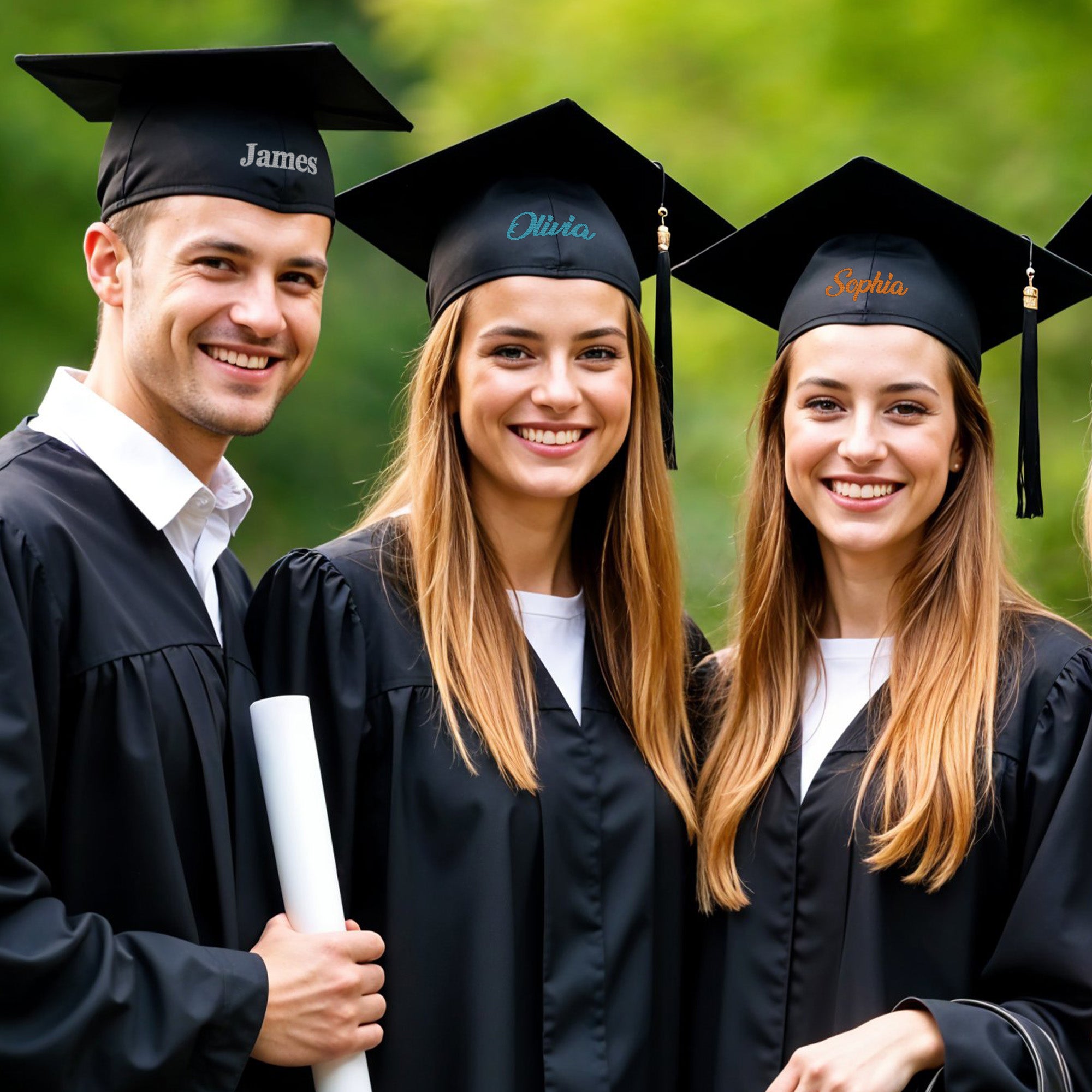- Personalized Embroidered Graduation Cap – Customize your graduation hat with your name, special phrase, or text in your choice of font and thread color for a unique and memorable keepsake.