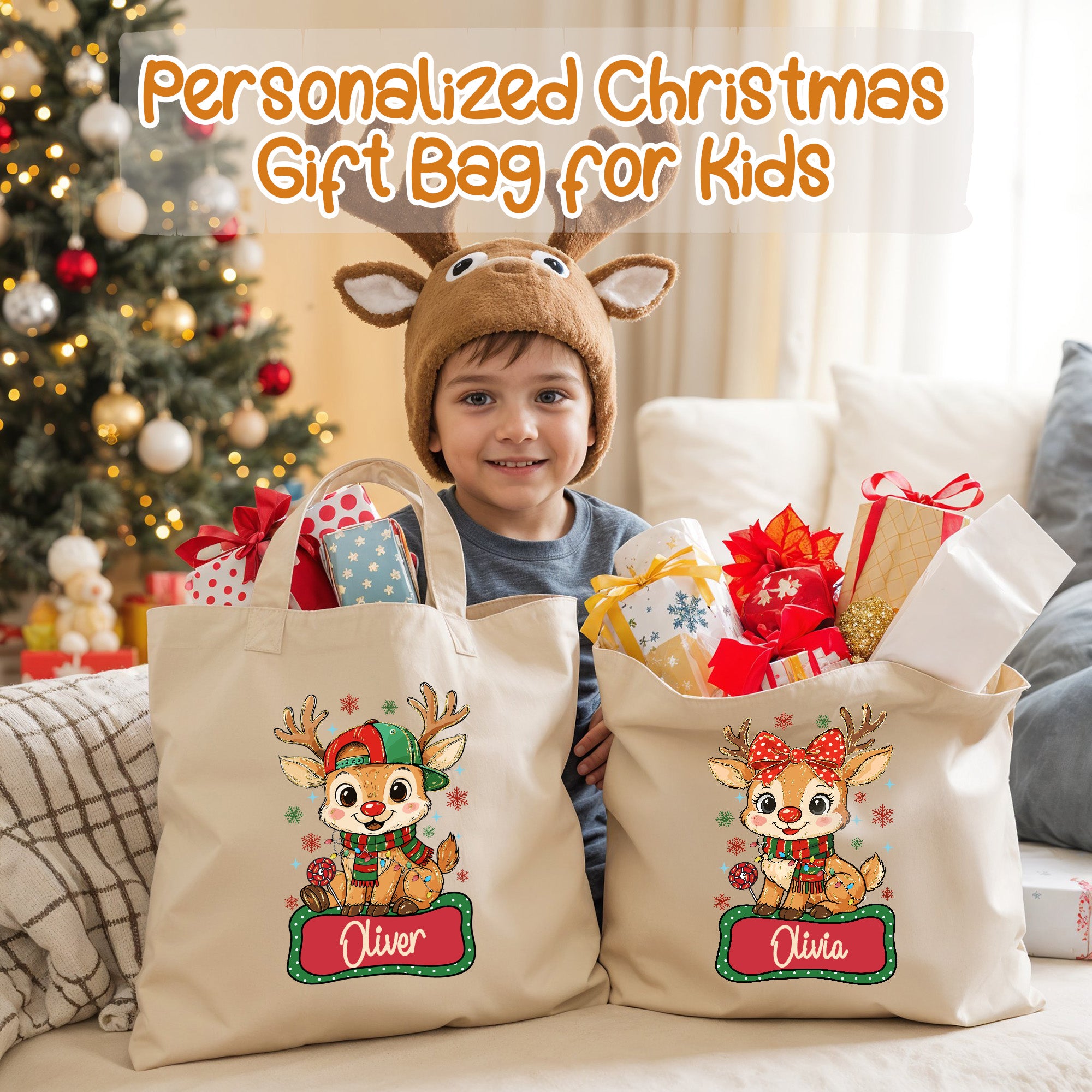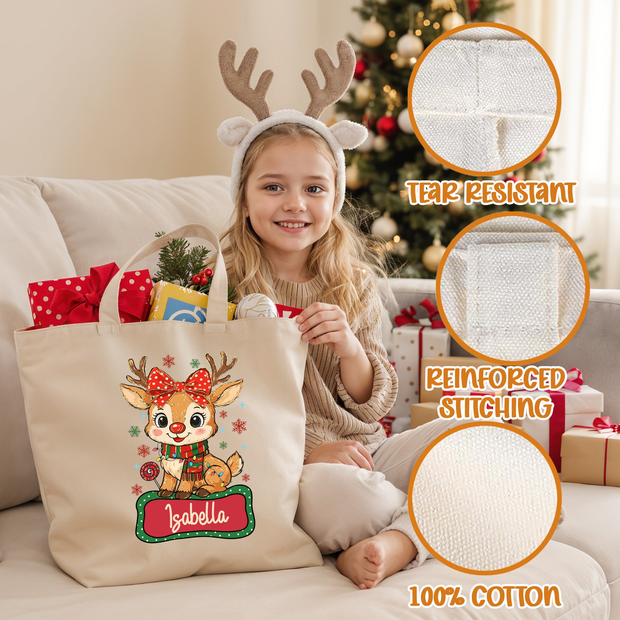 - Personalized Christmas Tote – The Tote-Bag-Christmas adds a special touch to your holiday with your custom name or initials printed on a white canvas tote bag. A festive, reusable gift bag for Christmas presents, shopping, or daily errands.