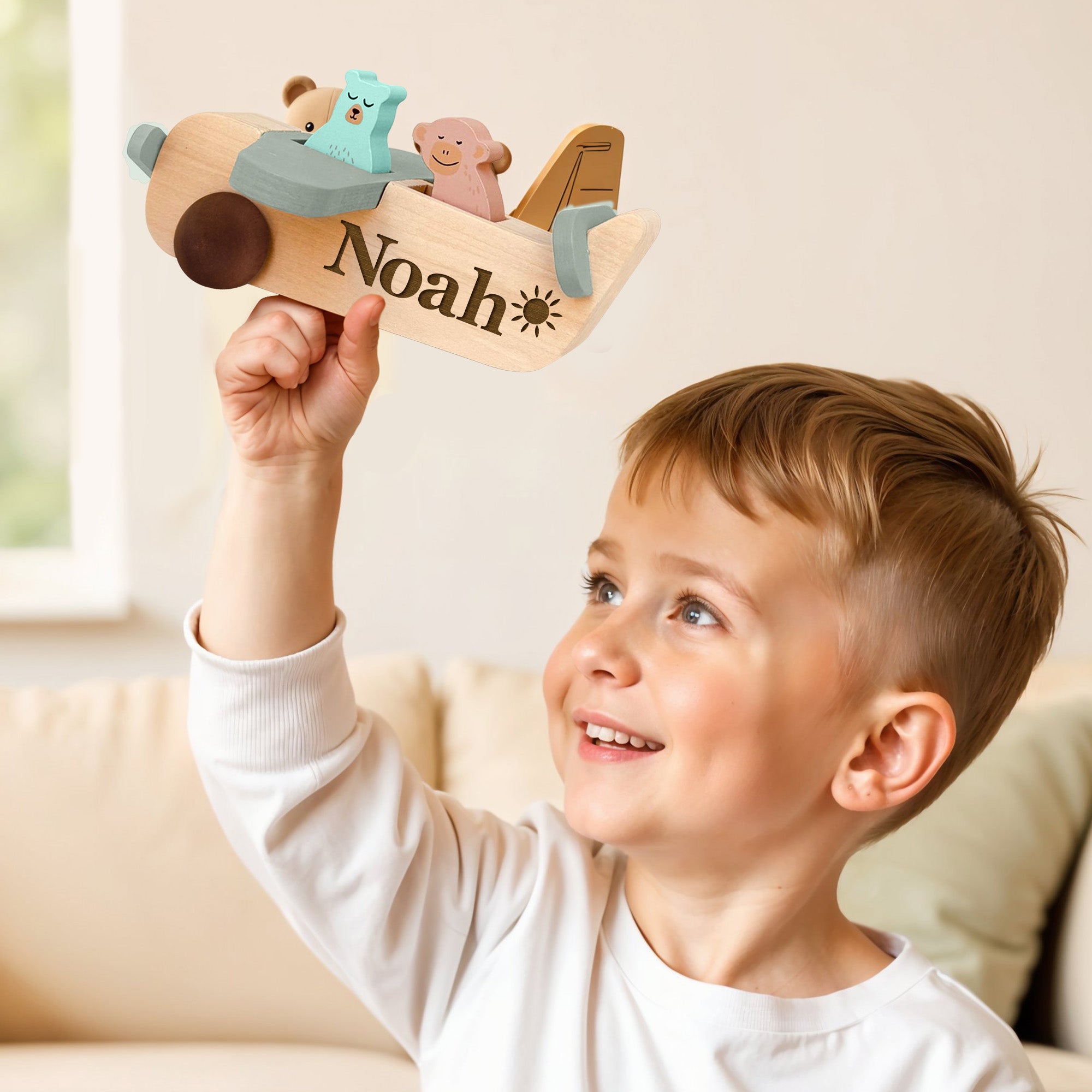 Personalized Wood Airplane Toy for Kids with Custom Name