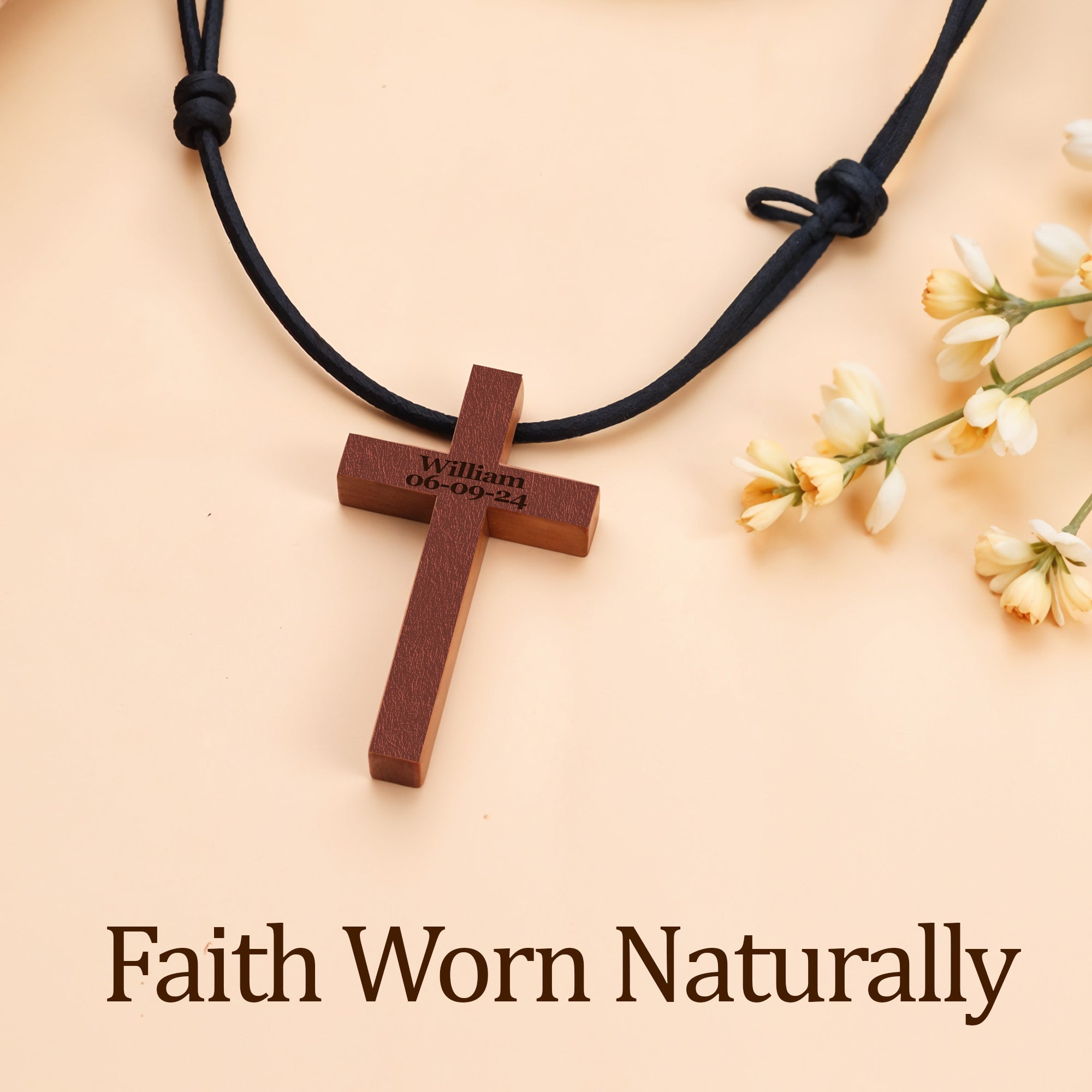 - Crafted from premium wood with lasting engraving: Made from solid wood and precisely laser engraved, this personalized cross pendant offers natural charm w/ enduring quality. Each piece is carefully finished for a smooth feel and clean look that lasts.